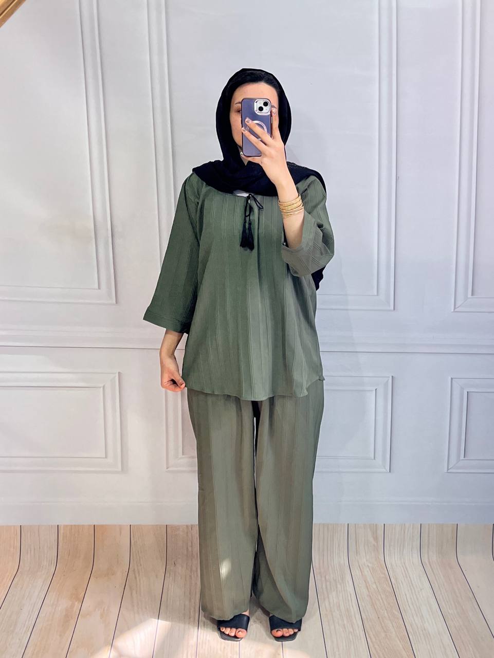 ست شومیز شلوار جنس آیوا فری سایز ۳۸ الی ۵۰ 📌دور سینه ۱۲۰ 📌قد آستین ۴۴ 📌قد شومیز ۷۲ 📌دور ران ۶۶ 📌قد فاق ۴۰ 📌دور کمر۶۶الی ۱۱۲ 📌قد شلوار ۱۰۱ قیمت ۴۹۹ ت