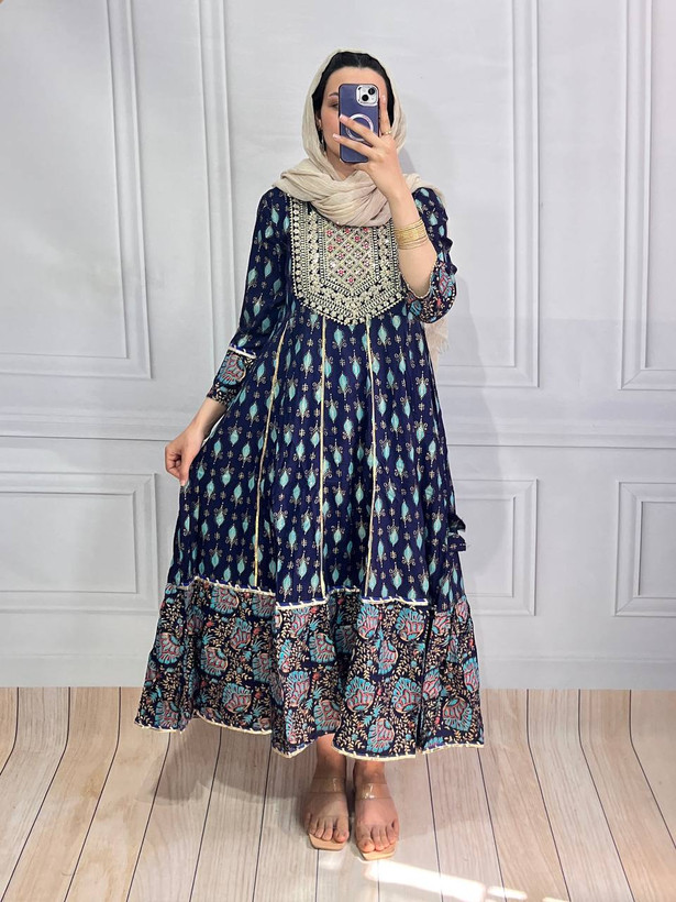 وارداتی جنس نخی تمام پیراهن طلاکوب کار شده