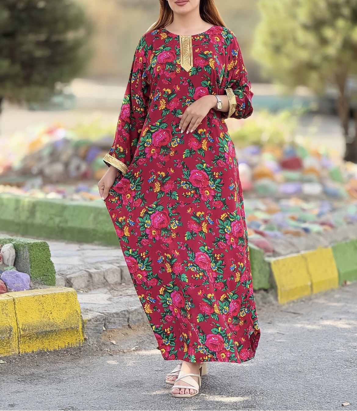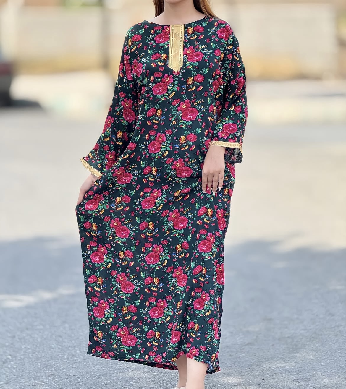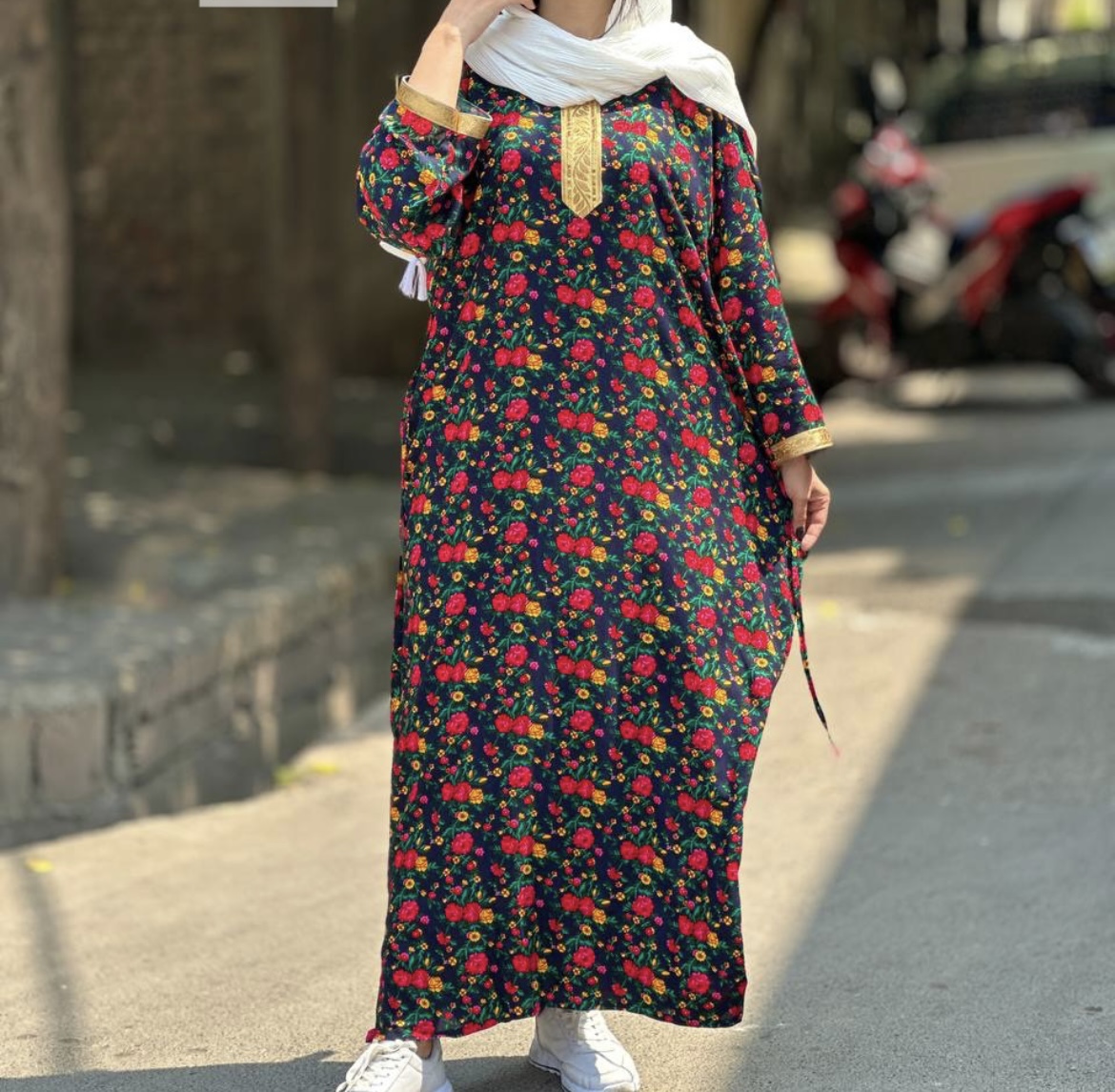 ساحلی نخی ترکمنستان جنس نخی خارجی سایز فری 38 الی 48 اندازه دور سینه 130 قد آستین از گودی گردن 57 قد پیراهن 133